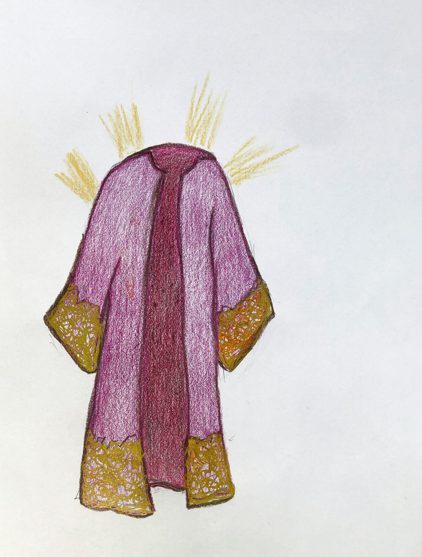 The mantle was a light purple or lavender with light woven through each. The inside of each mantle was the reddish-brown of Servanthood.
