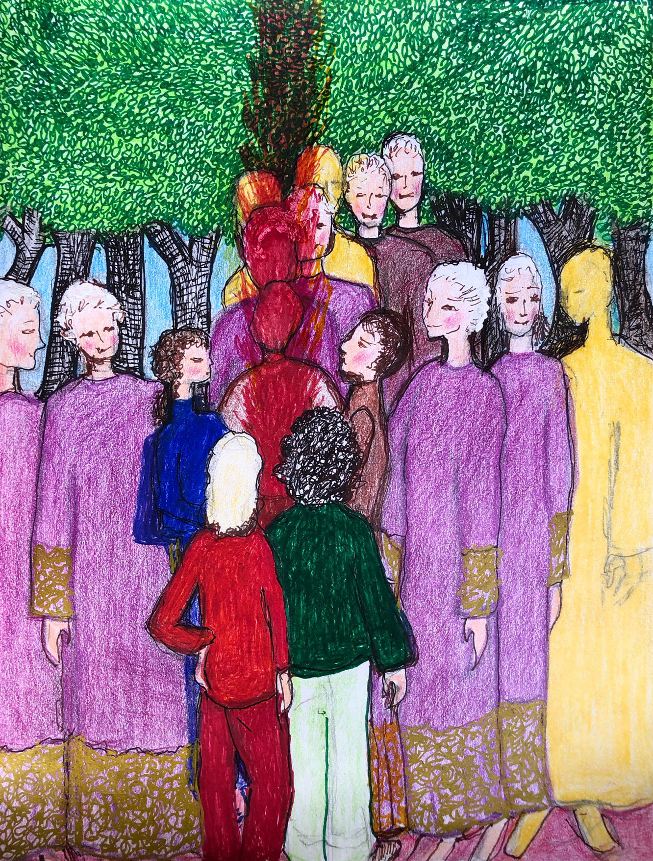 Then another group of angels came up the path and joined in. There were ten of these angels, also. These were dressed in reddish-brown