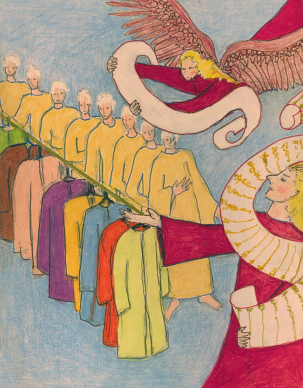 them. The garment was checked against the list. Then a couple of angels stepped forward from the long line of